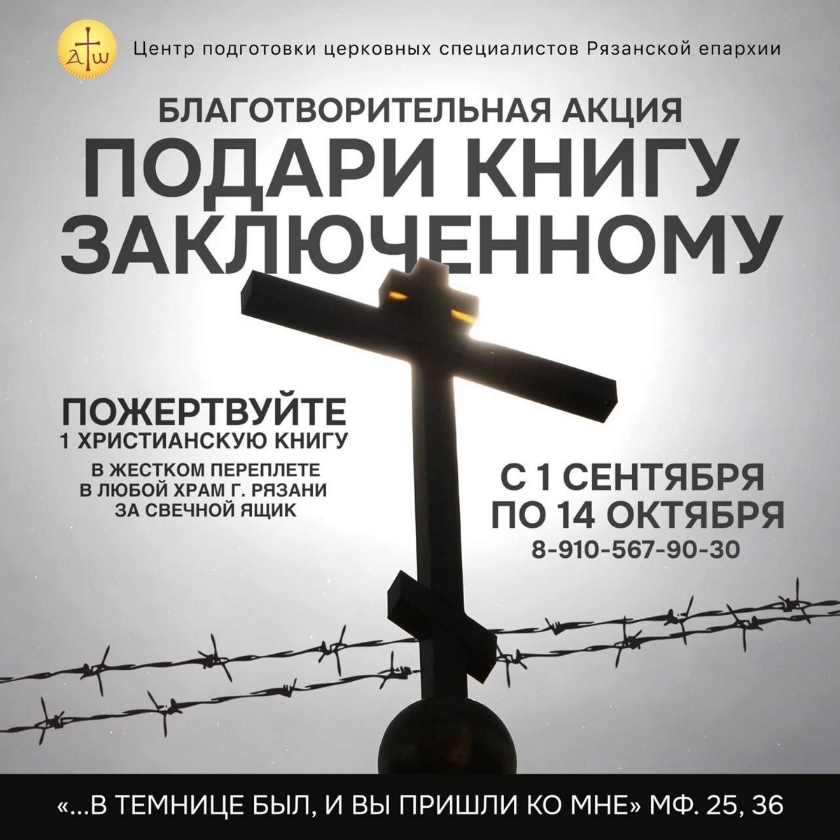 «С 1 сентября по 14 октября в храмах Рязанской Епархии проводят благотворительную акцию «Подари книгу заключенному». Ее организовал Центр подготовки специалистов Рязанской Епархии, приурочили ее к Празднику Покрова Пресвятой Богородицы. В этот день по давней традиции в храмах Рязанской Епархии проводят покровские сборы, все пожертвованные средства предназначаются для работы специального отдела по тюремному служению», – рассказала Наталья Каверзина.