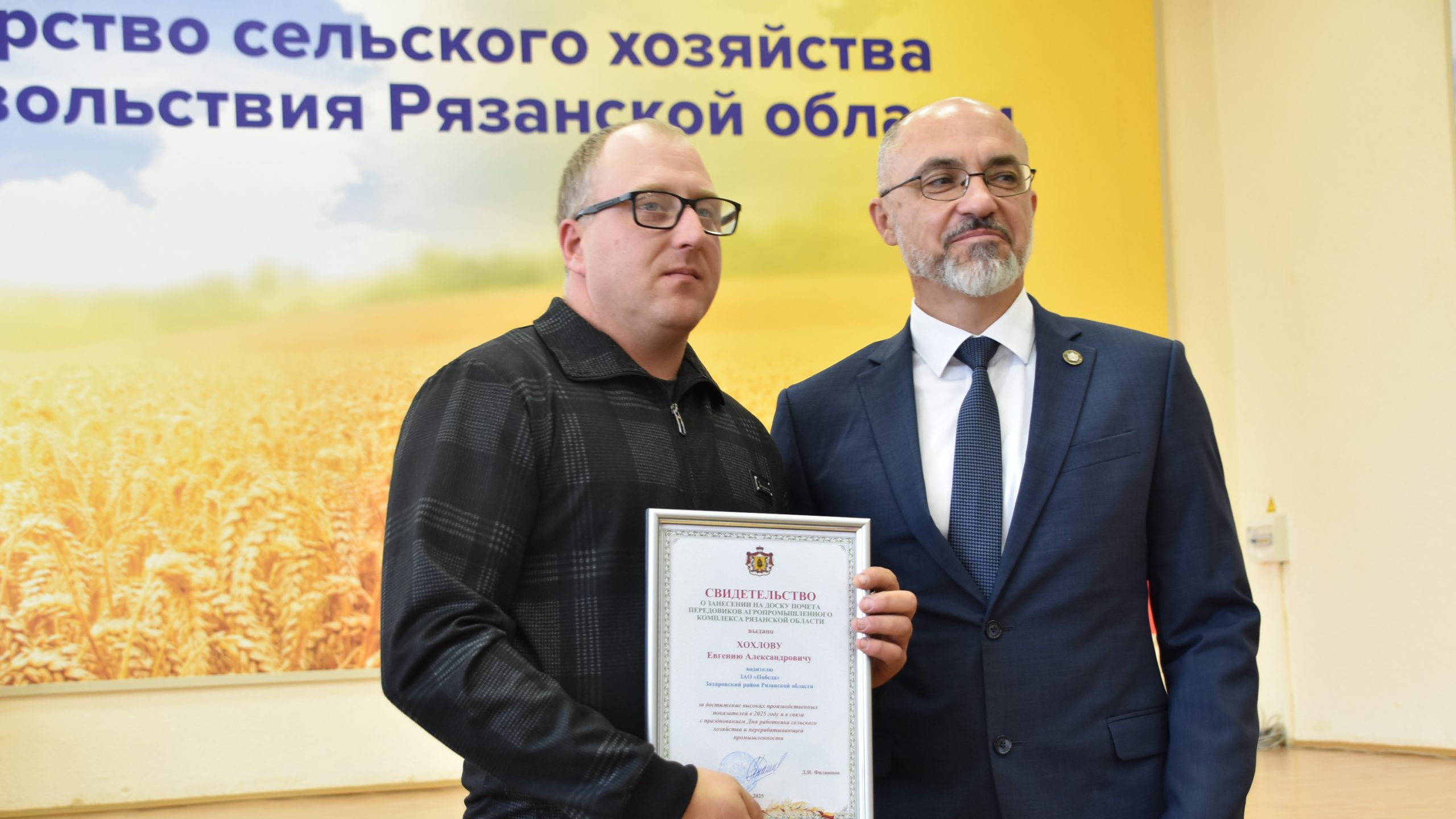 24 октября в Рязани свидетельства о занесении на Доску почета получили трое захаровцев: Валерий Лунин, тракторист-машинист ООО «ЛАГ-Сервис АГРО»; Александр Зиновьев, тракторист ООО «Путь Ленина»; Евгений Хохлов, водитель ЗАО «Победа».